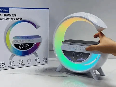 Además de ser un altavoz Bluetooth, incluye un reloj despertador, cargador inalámbrico y luces LED. Es un dispositivo todo en uno, ideal para cualquier espacio.